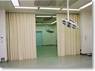 X線室の窓用カーテン、X線室内の間仕切り(更衣室等に利用)、ICU病室のベット間の間仕切り。